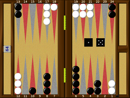 Tomorrow I want to look at some positions where I was trying to defend against a backgame. In the later stages, the plays are usually fairly regular, but in the first stages immediately after the Big Bang as it were, the plays are far from obvious. How well does the bot play them? How well did I play them? We'll see, but until then, enjoy the game!